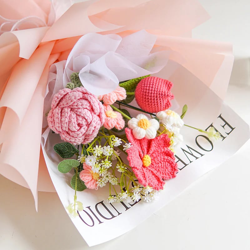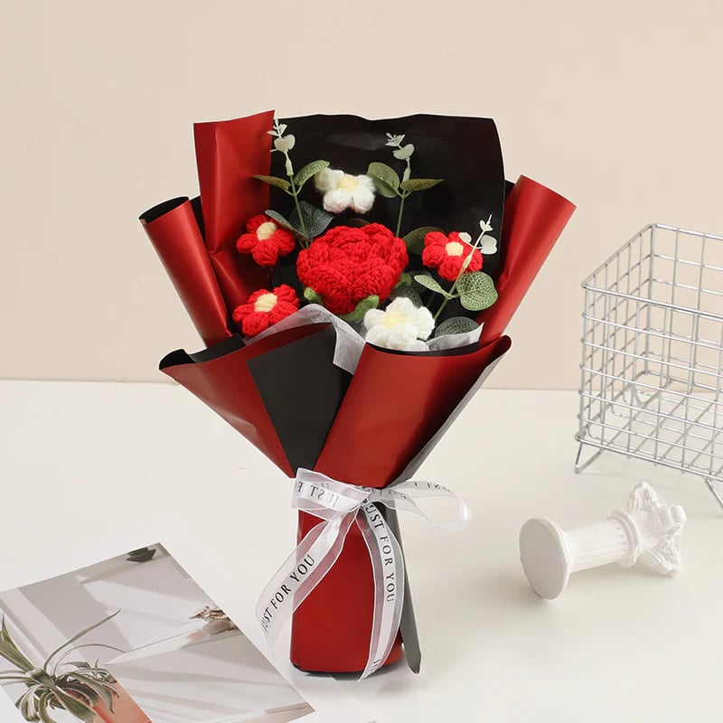 EVERLASTING BEAUTY - Unlike real flowers, this crochet bouquet will never wilt, fade, or require watering. It serves as a permanent, beautiful memento of a special moment, offering enduring charm for years to come.